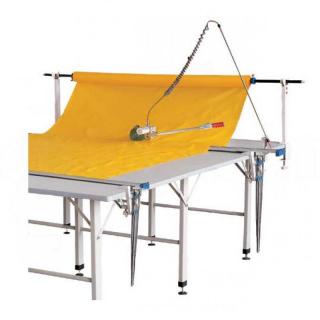 Дисковый приводной нож обеспечивает ровное отрезание любых текстильных материалов . Использование линейки позволяет уменьшить концевые припуски к длине настила и уменьшить расход материала на изделие.